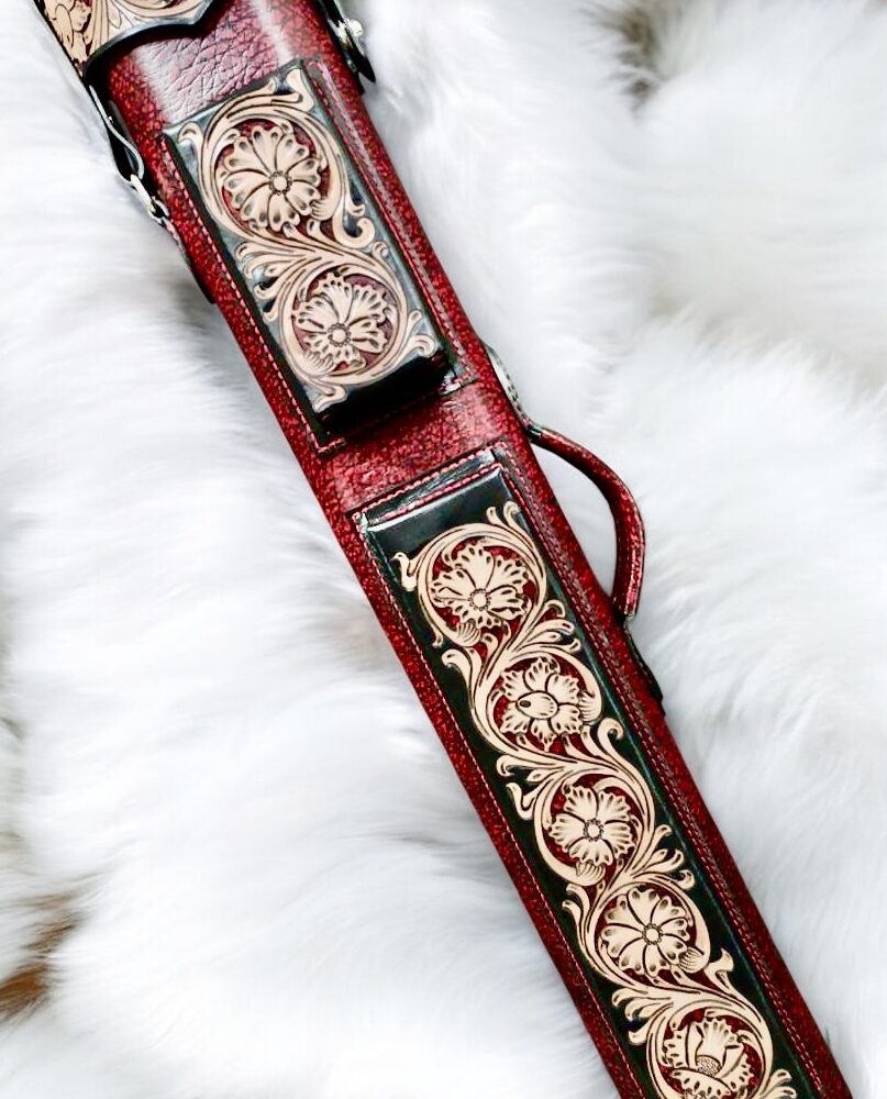 DescriptionBuffalo leather cue case with filigreeDesign PatternCarving Pattern 4Available colorsPossible in all custom colorsAvailable Sizes2x4, 3x6, 4x8Get a free quotation for a case like thisOrder now More CasesPhoenixSee moreBuffalo41See moreBuffaloCustomSee more