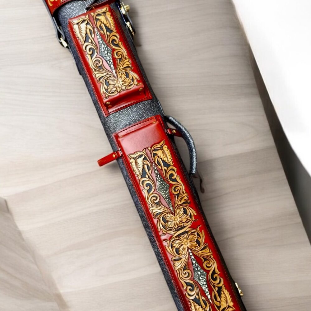 | Description | Buffalo leather cue case with stingray filigree |