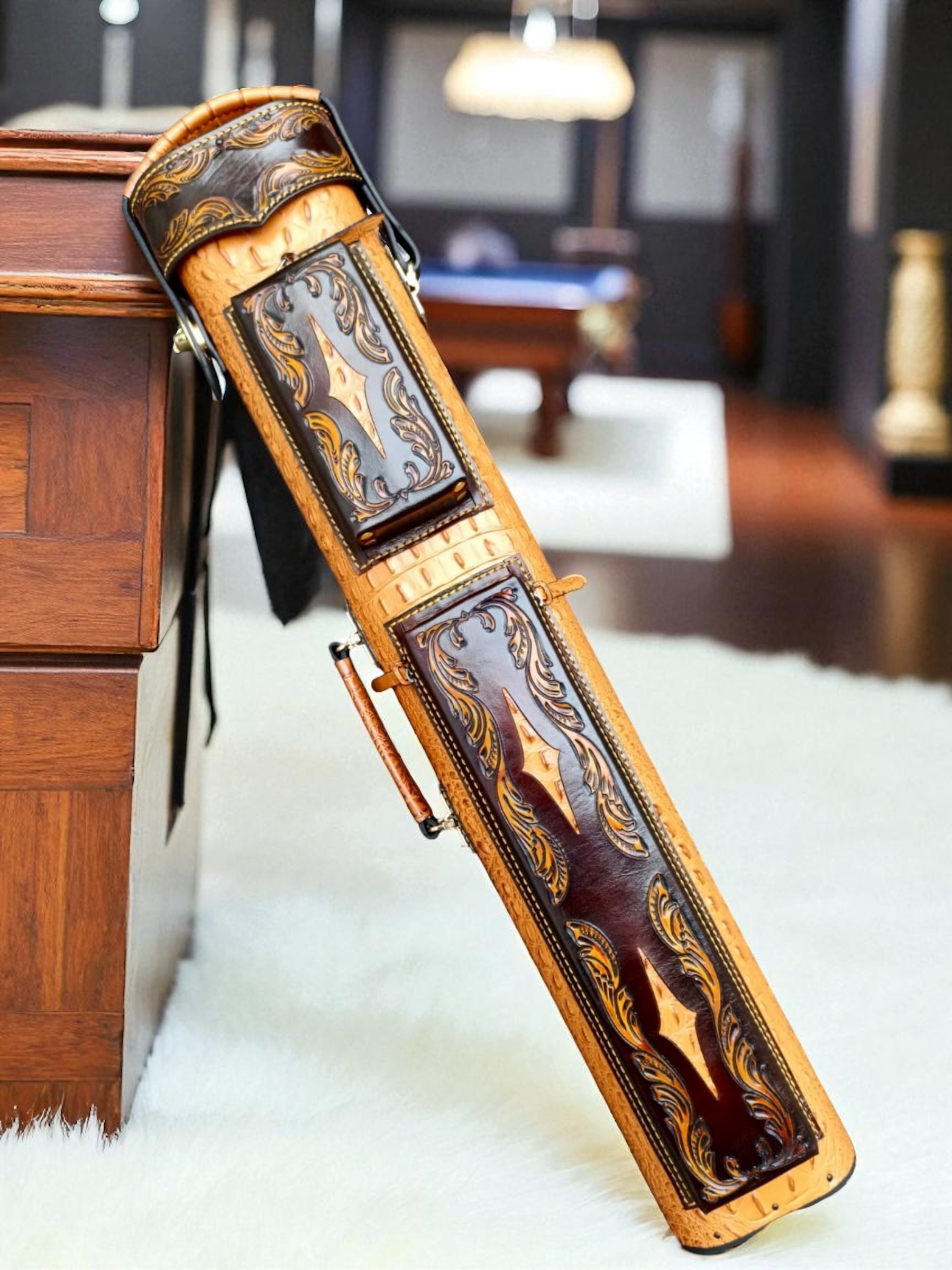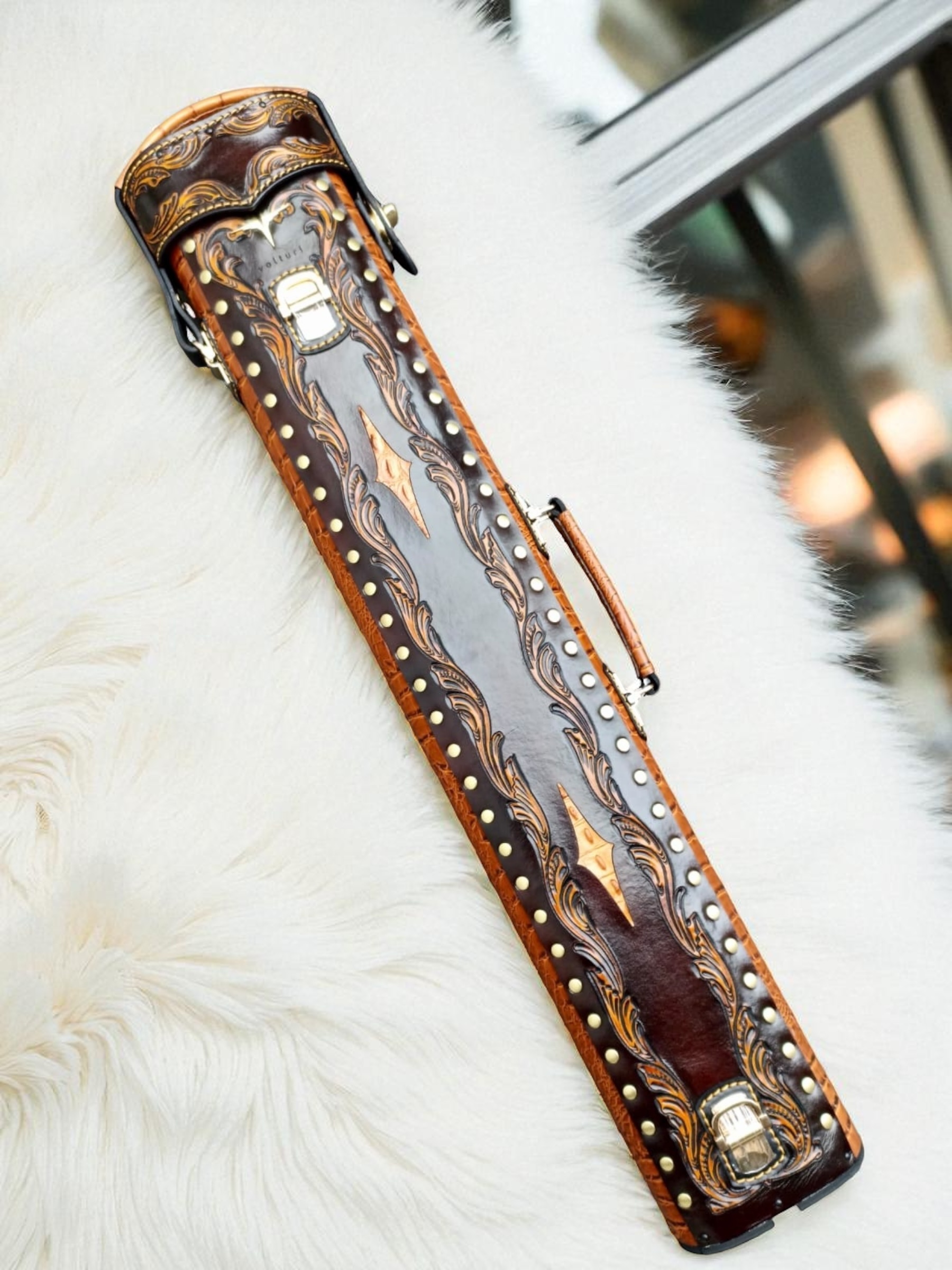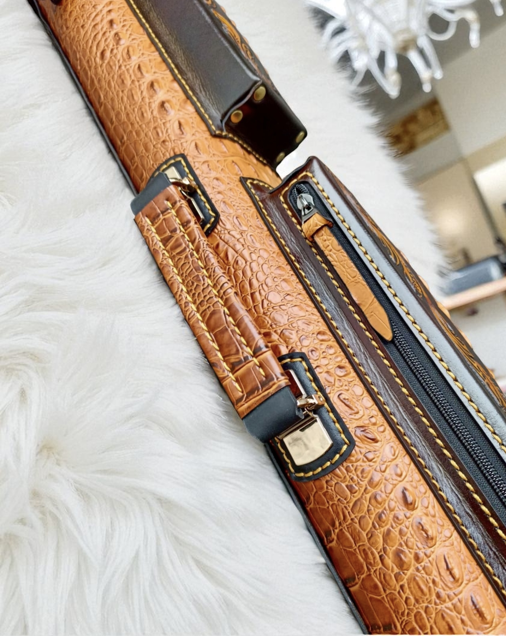 Vegetable tanned leather with embossed croc body