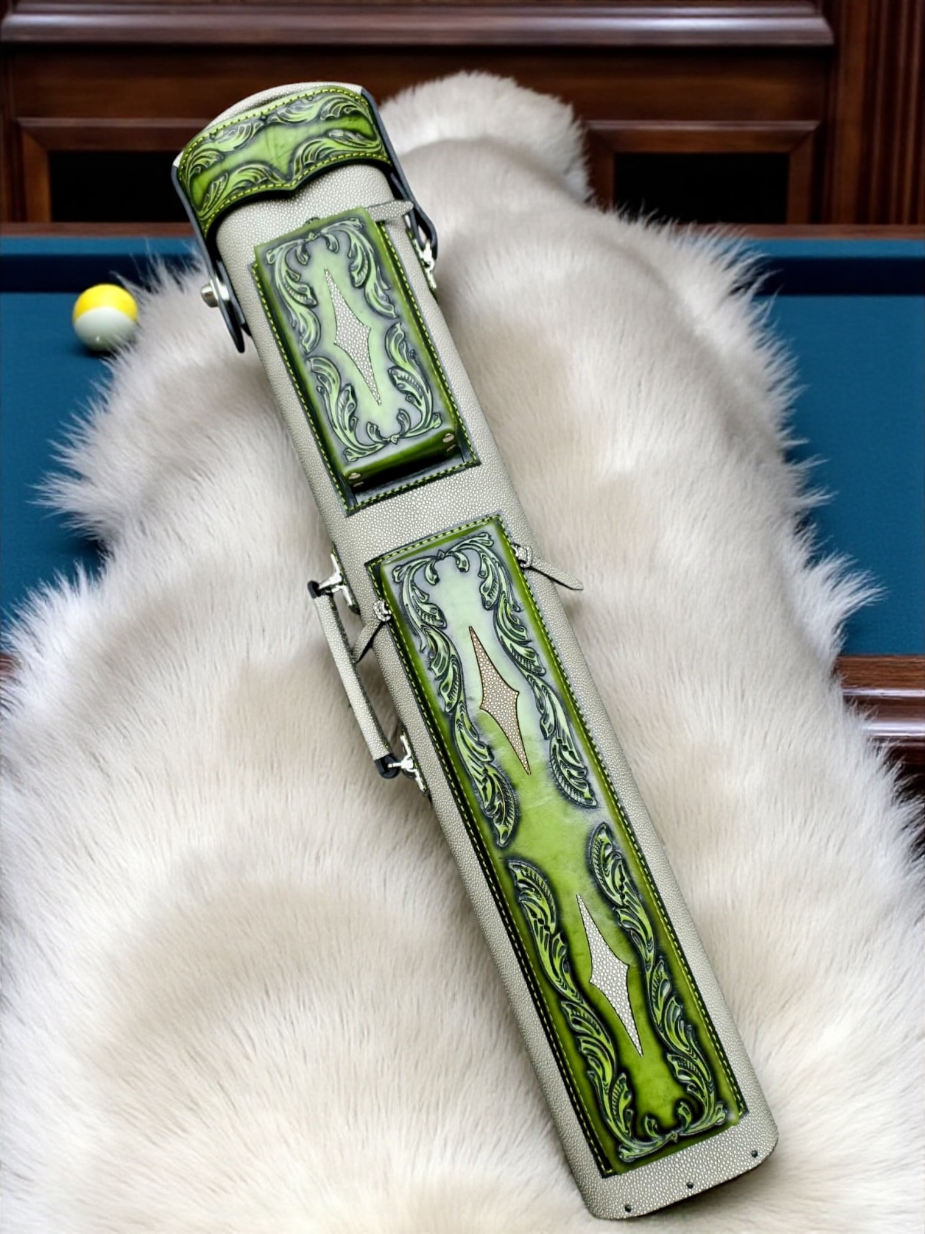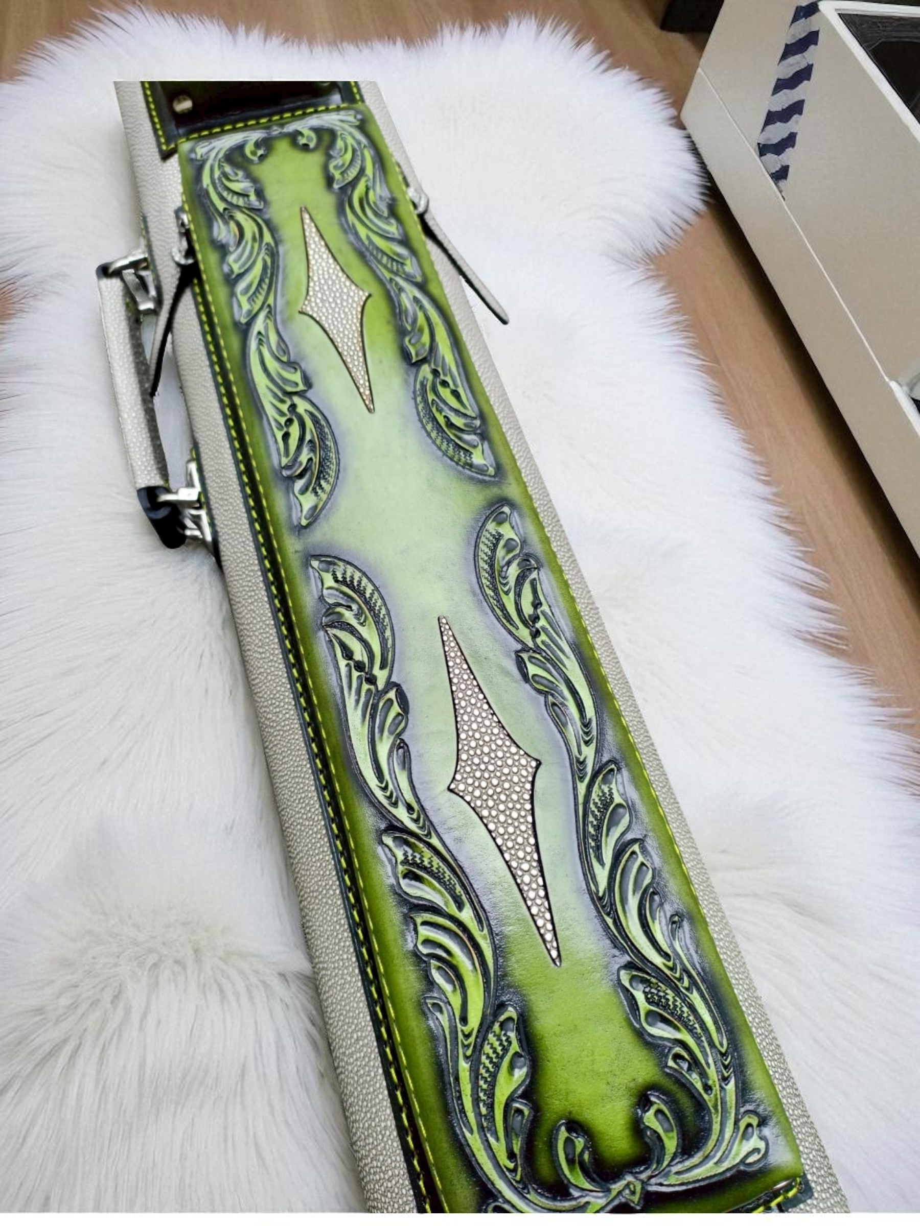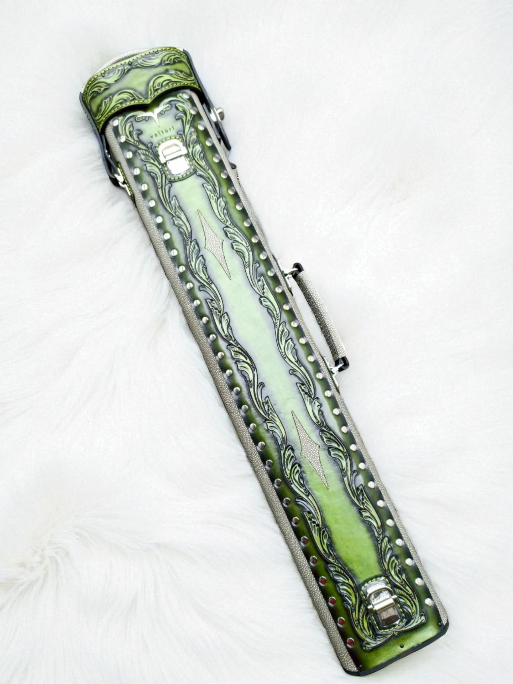 Vegetable tanned leather with embossed Stingray body