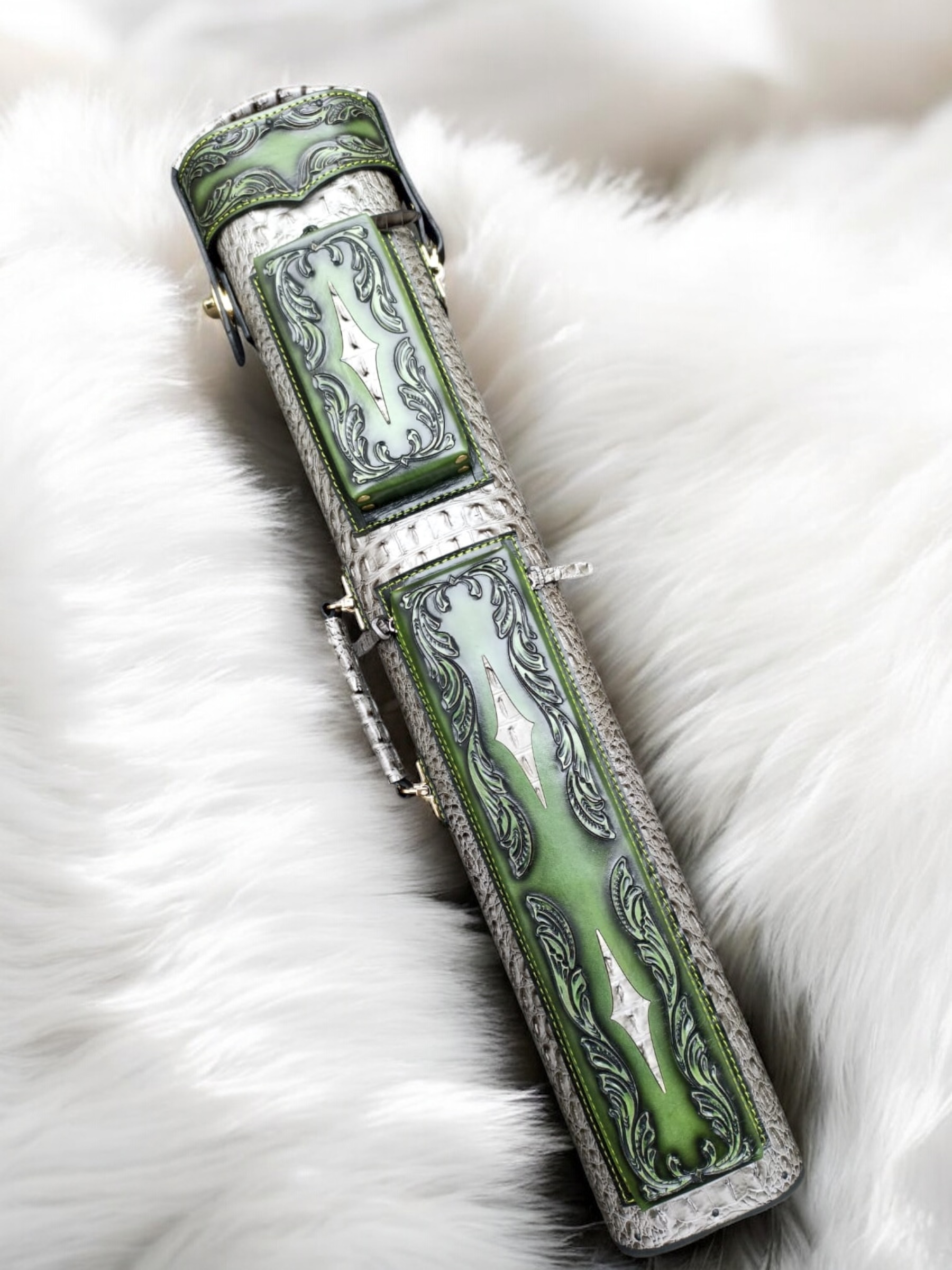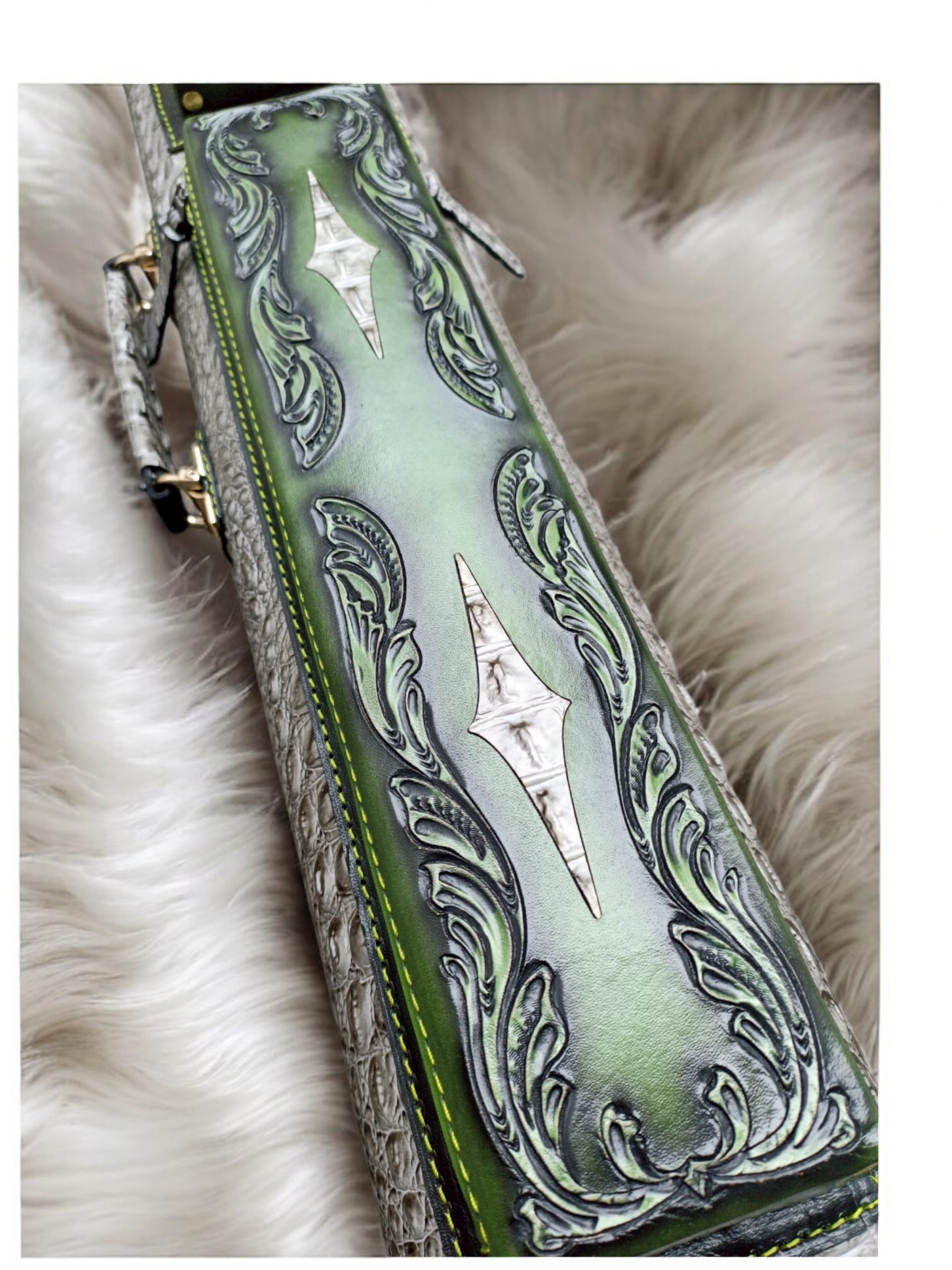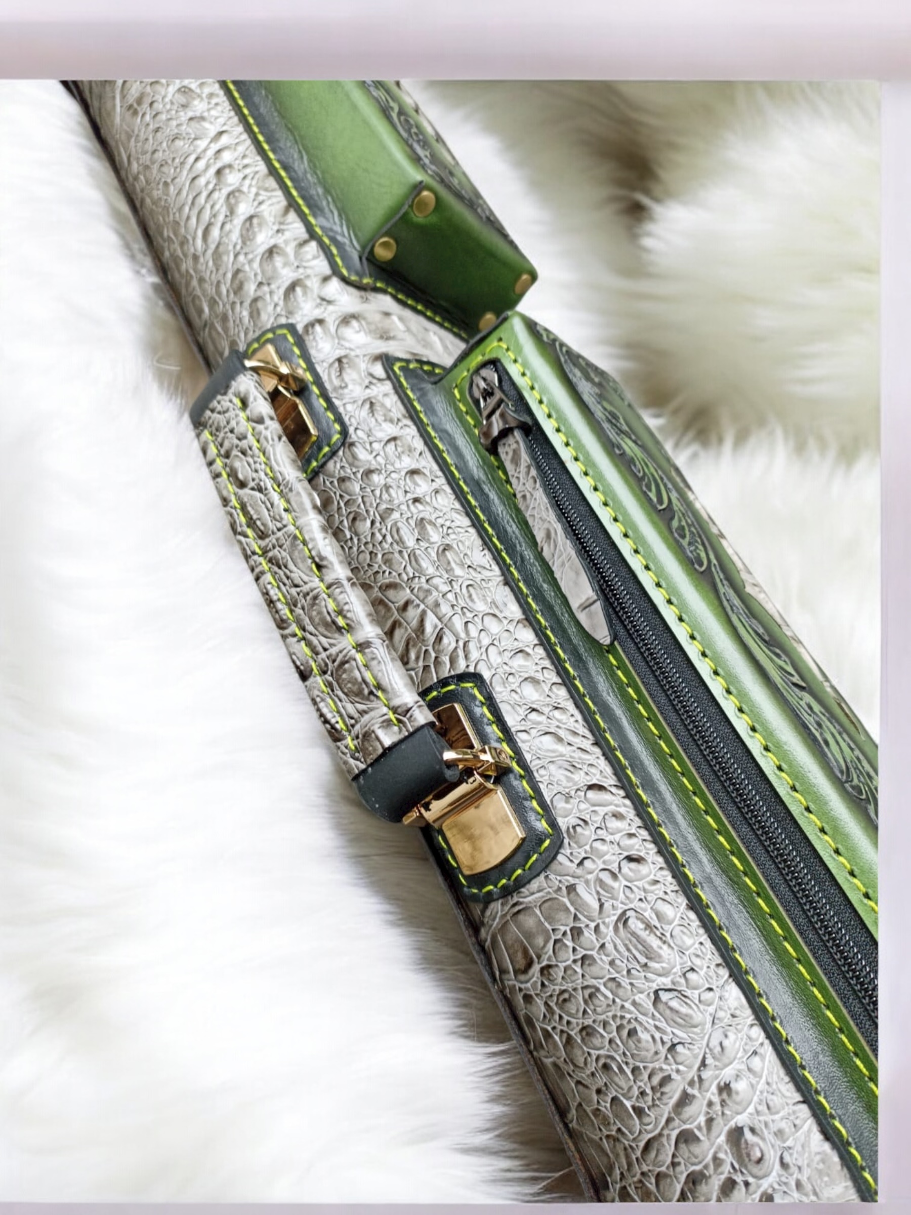 Vegetable tanned leather with embossed croc body